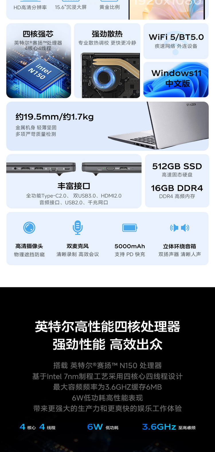 异能者P15H 15.6英寸办公商务学习轻薄手提笔记电脑
