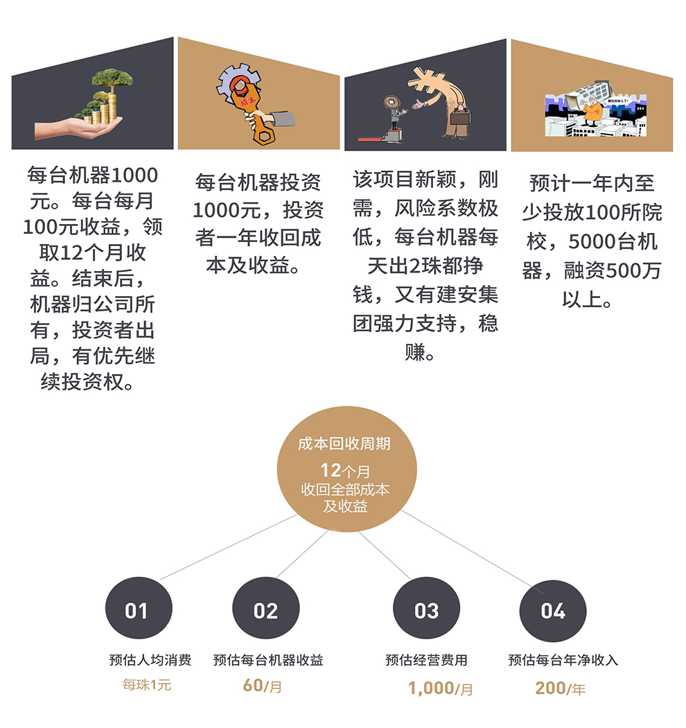 1、市场空白,各高校公寓都设有学生洗衣房,而没有与之相配套自动售洗衣珠机器,该项目正好弥补这一空白市场。